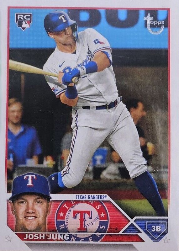 This card is 1 of 21 Josh Jung's card variations in the 2023 Topps set being tracked by Sports Card Investor, including Base, Gold Foil, Rainbow Foil, Royal Blue, and Gold /2023.
