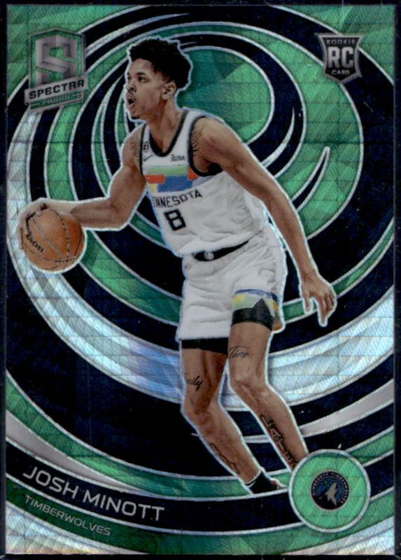 The Josh Minott 2022 Spectra #153 Asia Green Rookie card is 1 of 30 Josh Minott's card variations in the 2022 Spectra set being tracked by Sports Card Investor, including Base, Asia, Asia Black & White, Asia Red, and Menagerie.