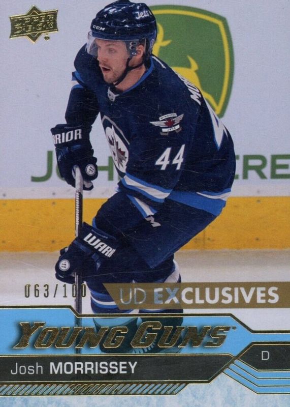 The biggest 30-day change Josh Morrissey cards are 2016 Upper Deck #226 Young Guns - UD Exclusives /100, 2016 Upper Deck #226 Young Guns - Silver Foil, and 2020 Upper Deck Parkhurst #55 Silver.
