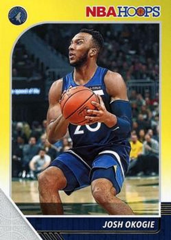 The Josh Okogie 2019 Hoops #113 Yellow card is 1 of 21 Josh Okogie's card variations in the 2019 Hoops set being tracked by Sports Card Investor, including Base, Premium Box Set /199, Black Artist's Proof /1, Blue, and Neon Green.