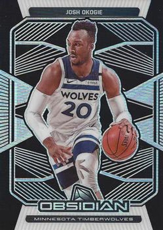 The Josh Okogie 2019 Obsidian #146 Base card is 1 of 11 Josh Okogie's card variations in the 2019 Obsidian set being tracked by Sports Card Investor, including Electric Etch Purple /75, Electric Etch Orange /50, Electric Etch White Pulsar /SSP, Electric Etch Green /25, and Electric Etch Blue FOTL /16.