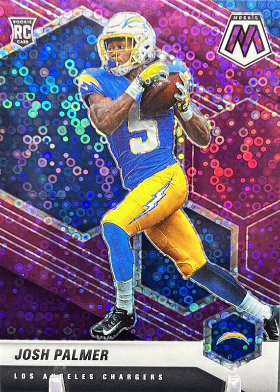This card is 1 of 39 Josh Palmer's card variations in the 2021 Mosaic set being tracked by Sports Card Investor, including Base, Choice Red & Green, Green, No Huddle, and Pink Camo.