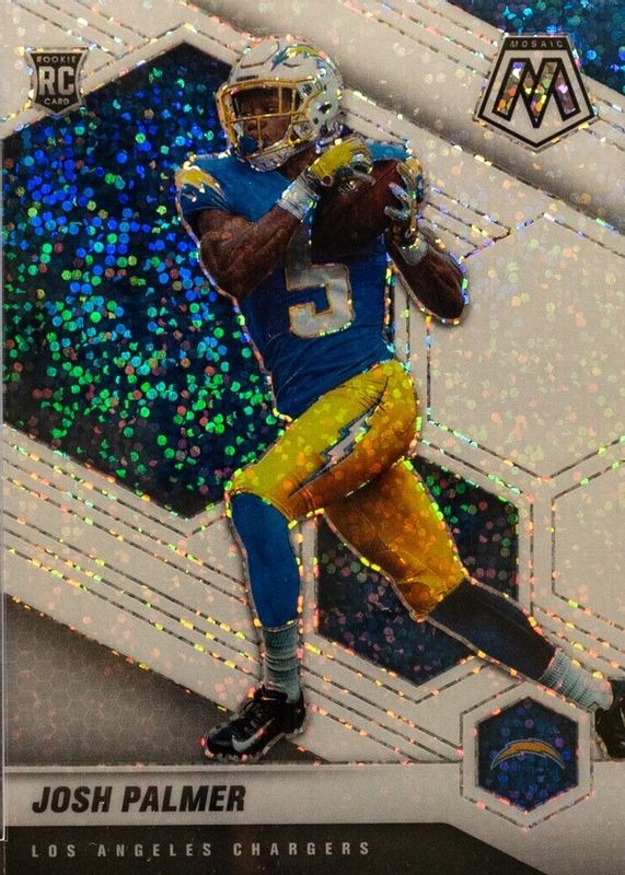 The Josh Palmer 2021 Mosaic #329 White Sparkle /(SSP) Rookie card in Raw condition has not changed in price in the last 30 days and was last sold for $45.71 .