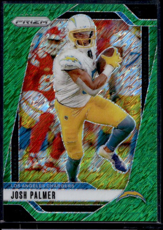 The Josh Palmer 2024 Prizm #159 Green Shimmer /5 card is 1 of 83 Josh Palmer's card variations in the 2024 Prizm set being tracked by Sports Card Investor, including Base, Choice Blue Yellow Green, Choice Silver, Disco, and Green.