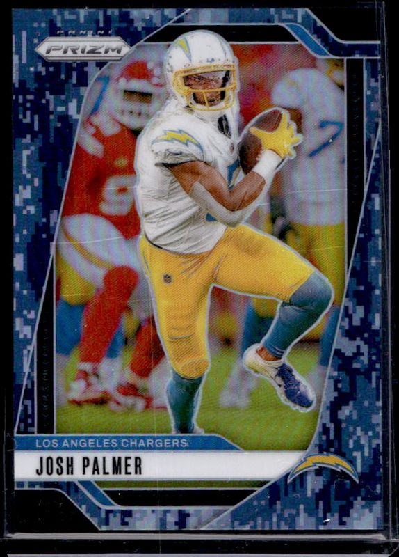 The Josh Palmer 2024 Prizm #159 Navy Camo /25 card is 1 of 83 Josh Palmer's card variations in the 2024 Prizm set being tracked by Sports Card Investor, including Base, Choice Blue Yellow Green, Choice Silver, Disco, and Green.