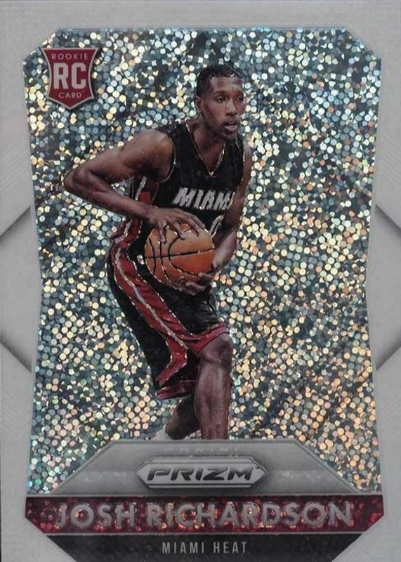 This card is 1 of 14 Josh Richardson's card variations in the 2015 Prizm set being tracked by Sports Card Investor, including Base, Flash, Green, Orange Wave, and Red White Blue.