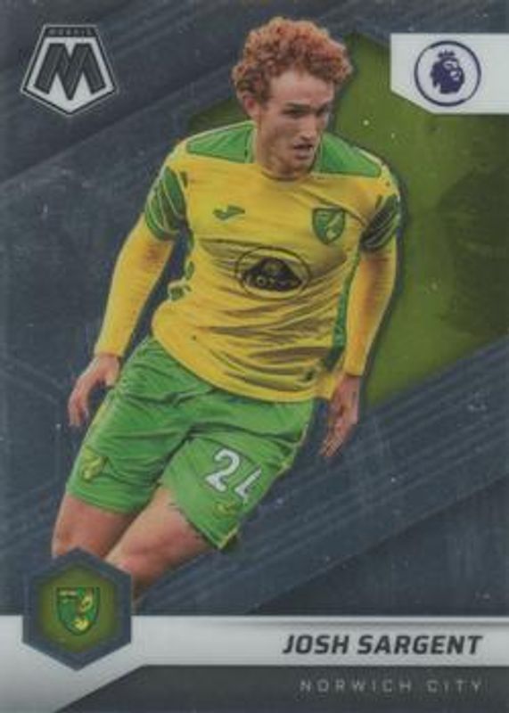 The Josh Sargent 2021 Mosaic Premier League #95 Base card is 1 of 39 Josh Sargent's card variations in the 2021 Mosaic Premier League set being tracked by Sports Card Investor, including Blue Pulsar, Choice Peacock, Choice Red & Green, Genesis, and Gold Pulsar.
