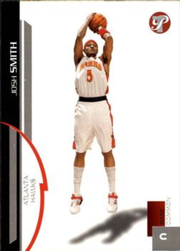 The Josh Smith (NBA) 2005 Topps Pristine #65 Base /100 card is 1 of 11 Josh Smith (NBA)'s card variations in the 2005 Topps Pristine set being tracked by Sports Card Investor, including Uncirculated /20, Die-Cut /7, Press Plates Black /1, Press Plates Cyan /1, and Press Plates Magenta /1.