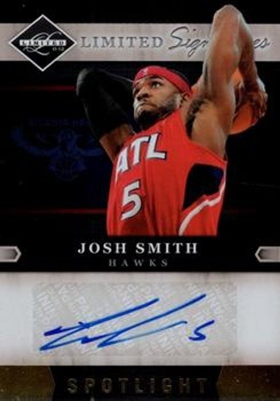 The Josh Smith (NBA) 2011 Limited #22 Signatures - Gold Spotlight /5 card is 1 of 19 Josh Smith (NBA)'s card variations in the 2011 Limited set being tracked by Sports Card Investor, including Base /299, Silver Spotlight /49, Gold Spotlight /25, National Convention VIP /5, and Platinum Spotlight /1.