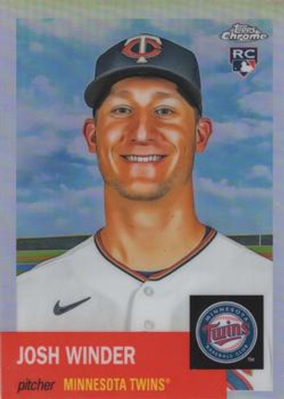 The Josh Winder 2022 Topps Chrome Platinum Anniversary #115 Refractor Rookie card is 1 of 34 Josh Winder's card variations in the 2022 Topps Chrome Platinum Anniversary set being tracked by Sports Card Investor, including Base, Black & White Mini Diamond Refractor, Blue Prism Refractor, Gold Prism Refractor, and Prism Refractor.