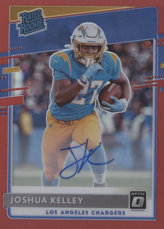 Best Prices Available For Sale of Joshua Kelley 2020 Optic #188 Rated Rookie Autographs - Red /50