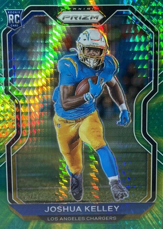 This card is 1 of 61 Joshua Kelley's card variations in the 2020 Prizm set being tracked by Sports Card Investor, including Base, Disco, Green, Lazer, and Light Blue.