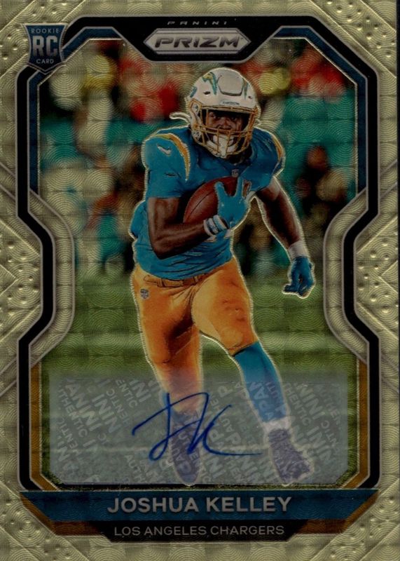 The Joshua Kelley 2020 Prizm #326 Rookie Autographs - Gold Vinyl /5 card in Raw condition has not changed in price in the last 30 days and was last sold for $84.99 .