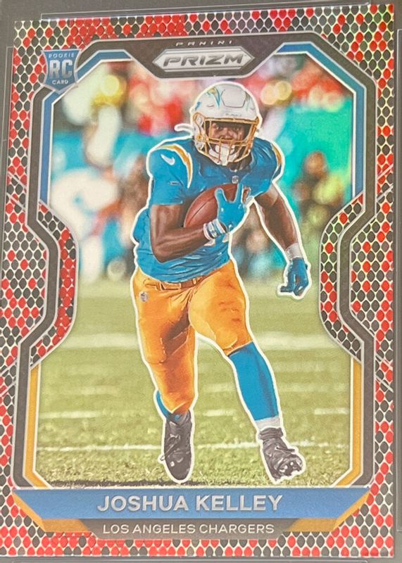The Joshua Kelley 2020 Prizm #326 Snakeskin /(SSP) Rookie card in Raw condition has not changed in price in the last 30 days and was last sold for $29.00 .