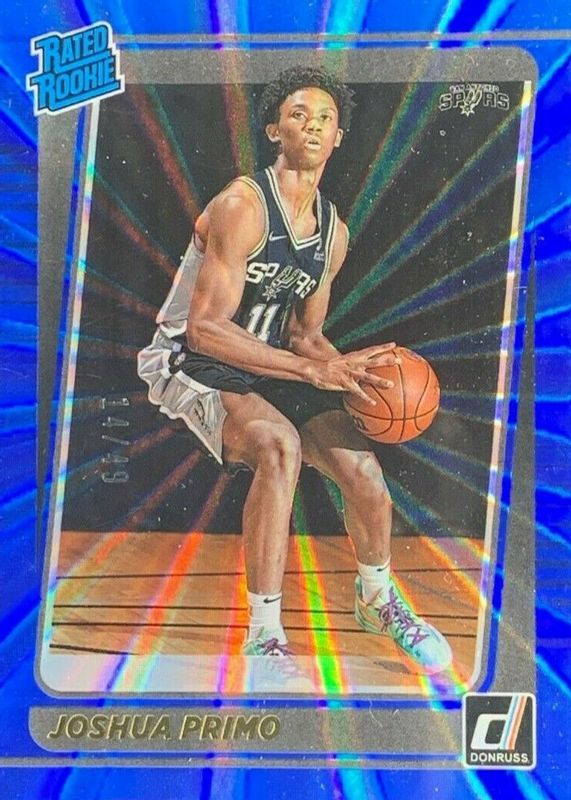 The Joshua Primo 2021 Donruss #212 Blue Laser /49 Rookie card in Raw condition has not changed in price in the last 30 days and was last sold for $3.00 .