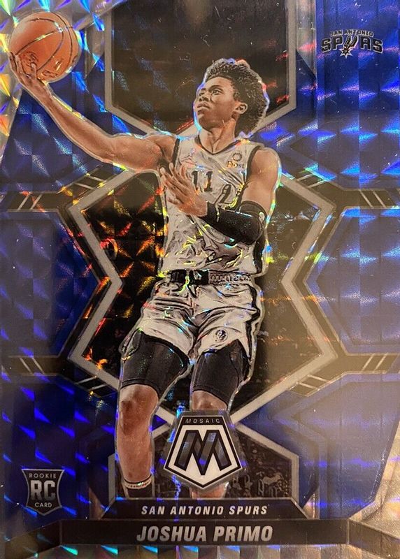 The Joshua Primo 2021 Mosaic #275 NBA Debut - Blue /99 Rookie card in Raw condition has not changed in price in the last 30 days and was last sold for $6.32 .