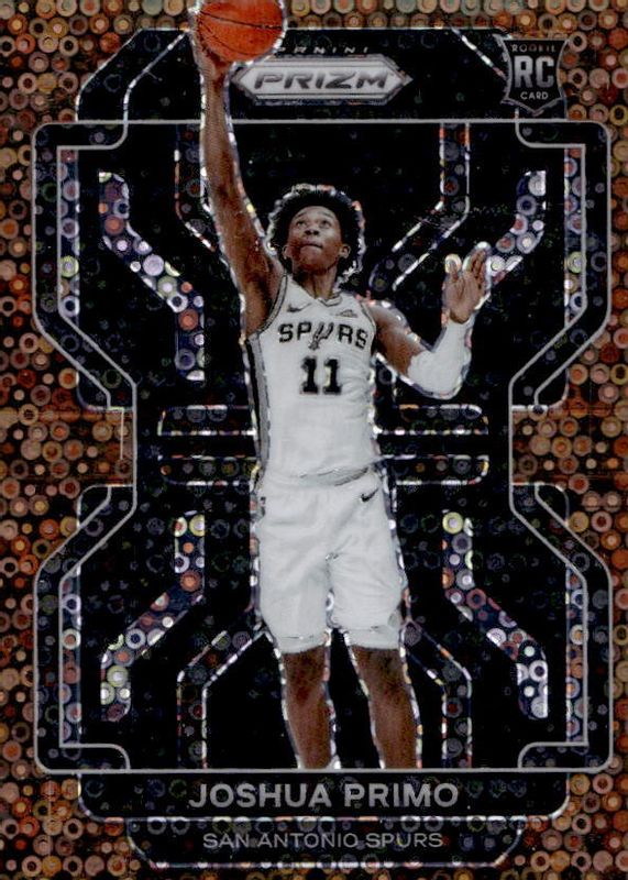 This card is 1 of 102 Joshua Primo's card variations in the 2021 Prizm set being tracked by Sports Card Investor, including #298b Base, #298 Base, #298 Photo Variation, #298 Blue NBA 75th Anniversary, and #298 Blue Wave.