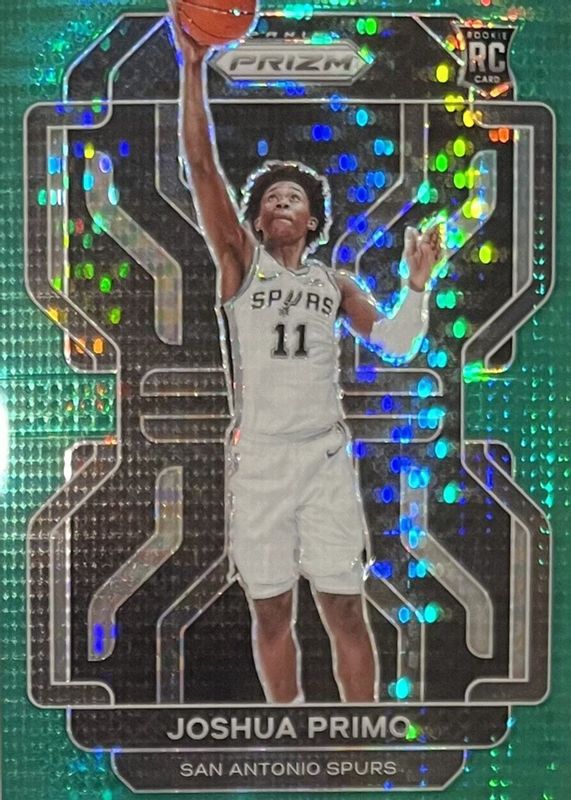 This card is 1 of 102 Joshua Primo's card variations in the 2021 Prizm set being tracked by Sports Card Investor, including #298b Base, #298 Base, #298 Photo Variation, #298 Blue NBA 75th Anniversary, and #298 Blue Wave.