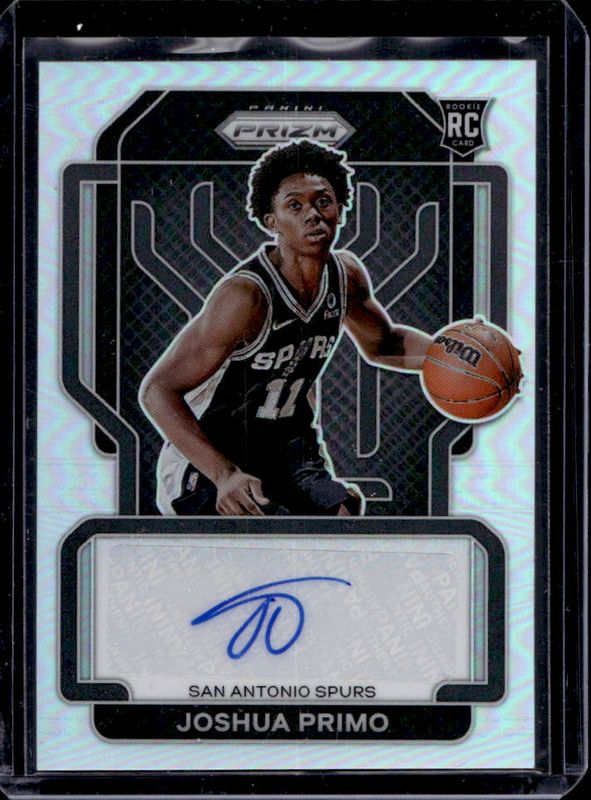 The Joshua Primo 2021 Prizm #RS-JPR Rookie Signatures - Silver card is 1 of 102 Joshua Primo's card variations in the 2021 Prizm set being tracked by Sports Card Investor, including #298b Base, #298 Base, #298 Photo Variation, #298 Blue NBA 75th Anniversary, and #298 Blue Wave.