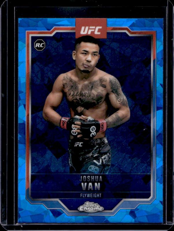 The Joshua Van 2025 Topps Chrome UFC Sapphire Edition #136 Base Rookie card is 1 of 14 Joshua Van's card variations in the 2025 Topps Chrome UFC Sapphire Edition set being tracked by Sports Card Investor, including Green /75, Gold /50, Orange /25, Purple /10, and Red /5.