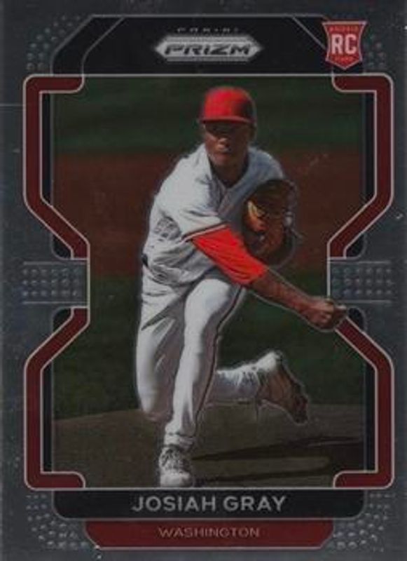 The Josiah Gray 2022 Prizm #84 Base Rookie card is 1 of 69 Josiah Gray's card variations in the 2022 Prizm set being tracked by Sports Card Investor, including Blue, Blue Velocity, Carolina Blue, Cosmic Haze, and Giraffe.