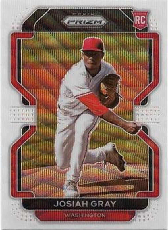 The Josiah Gray 2022 Prizm #84 White Wave Rookie card is 1 of 69 Josiah Gray's card variations in the 2022 Prizm set being tracked by Sports Card Investor, including Base, Blue, Blue Velocity, Carolina Blue, and Cosmic Haze.