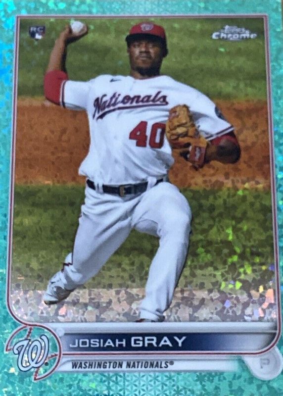 The Josiah Gray 2022 Topps Chrome #160 Aqua Mini-Diamond Refractor /199 Rookie card in Raw condition has not changed in price in the last 30 days and was last sold for $4.50 .