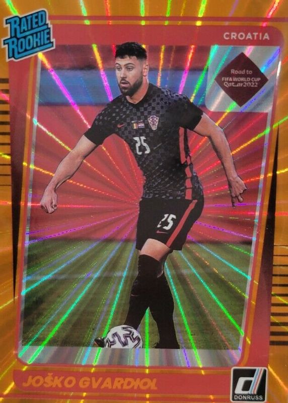 2021 Donruss Road to Qatar Rated Holo Orange Laser Josko Gvardiol #185 Rookie RC