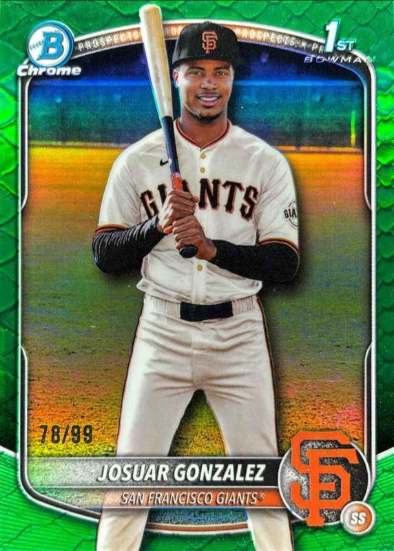 This card is 1 of 100 Josuar Gonzalez's card variations in the 2025 Bowman Chrome set being tracked by Sports Card Investor, including Acension Autographs, Ascensions, Base Image Variation, International Refractor Variation, and Prospect Auto (1st).