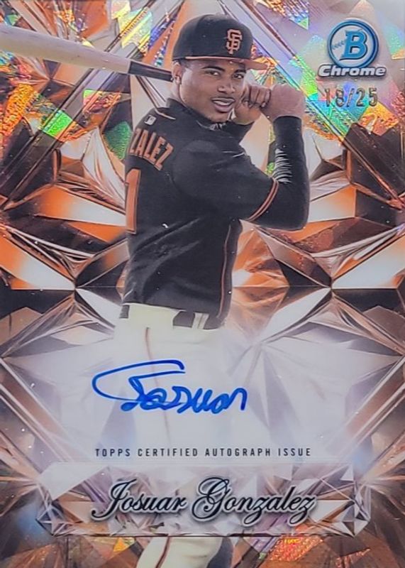 Best Prices Available For Sale of Josuar Gonzalez 2025 Bowman Chrome Sapphire Edition #SSA-JG Sapphire Selections Autographs - Orange /25