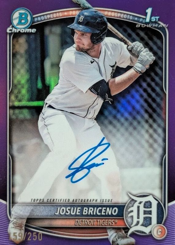 2025 Bowman Josue Briceno 1st Chrome Purple Refractor Auto #/250 Detroit Tigers