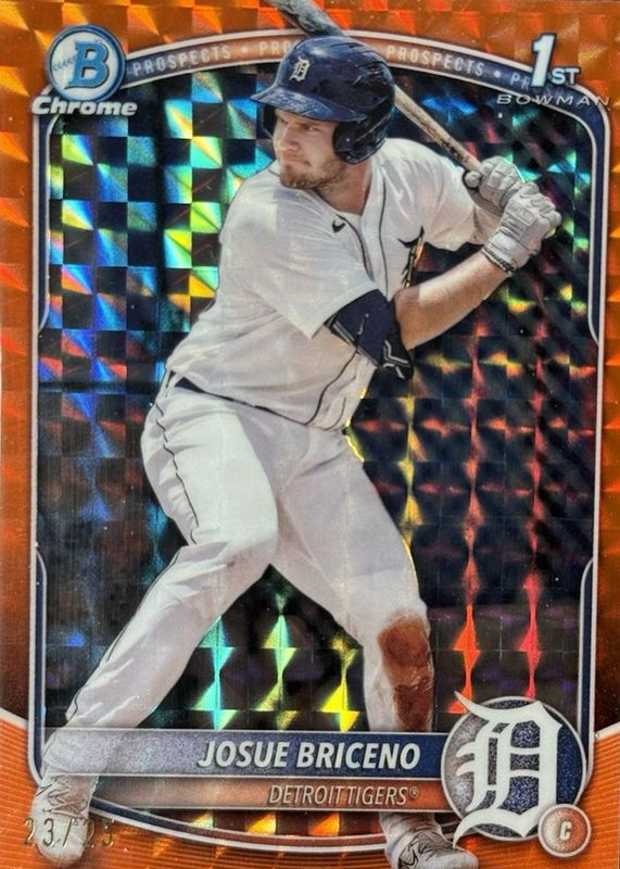 2025 Bowman Chrome Josue Briceno Orange Geometric /25 1st Refractor Tigers