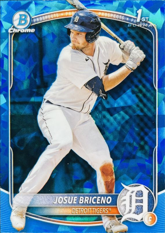 The Josue Briceno 2025 Bowman Sapphire Edition #BCP-13 Chrome Prospects card is 1 of 16 Josue Briceno's card variations in the 2025 Bowman Sapphire Edition set being tracked by Sports Card Investor, including Chrome Prospect Autographs /199, Chrome Prospect Autographs - Green Refractor /99, Chrome Prospects - Green Refractor /99, Chrome Prospects - Yellow Refractor /75, and Chrome Prospect Autographs - Gold Refractor /50.