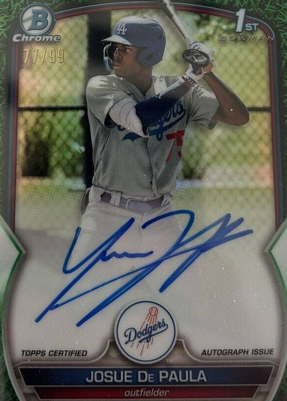 2023 1st Bowman Chrome Auto Green Grass Refractor Josue De Paula 81/99 Dodgers