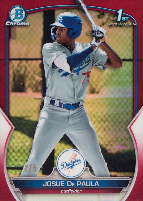 Josue De Paula 2023 Bowman #BCP-111 Chrome Prospects - Red Refractor /5 (1st) RAW Price Guide