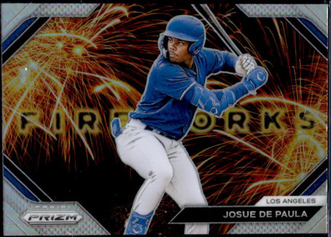 The Josue De Paula 2024 Prizm #10 Fireworks - Silver card is 1 of 38 Josue De Paula's card variations in the 2024 Prizm set being tracked by Sports Card Investor, including Base, Blue Ice, Green, Green Ice, and Pink Ice.