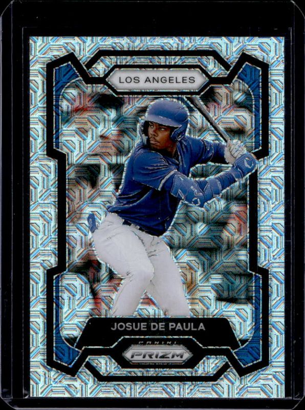 The Josue De Paula 2024 Prizm #173 Mojo /25 card is 1 of 38 Josue De Paula's card variations in the 2024 Prizm set being tracked by Sports Card Investor, including Base, Blue Ice, Green, Green Ice, and Pink Ice.