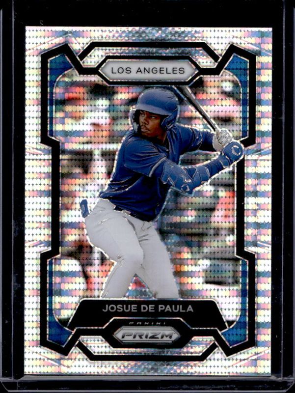 The Josue De Paula 2024 Prizm #173 Pulsar /499 card is 1 of 38 Josue De Paula's card variations in the 2024 Prizm set being tracked by Sports Card Investor, including Base, Blue Ice, Green, Green Ice, and Pink Ice.