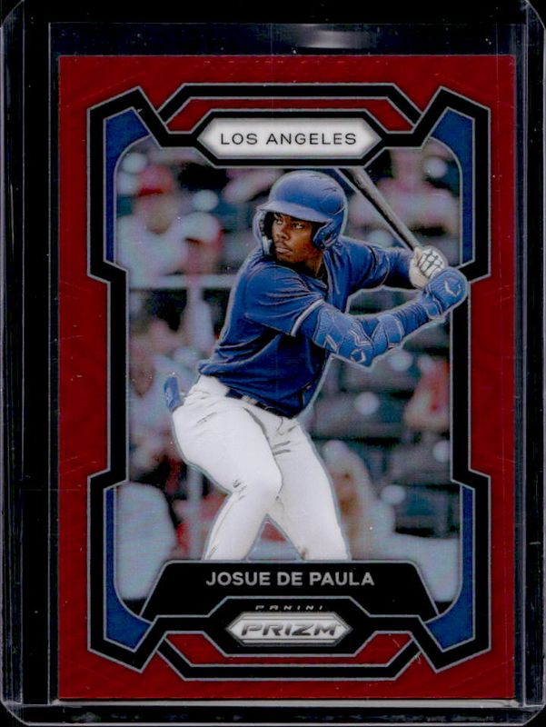 The Josue De Paula 2024 Prizm #173 Red /299 card is 1 of 38 Josue De Paula's card variations in the 2024 Prizm set being tracked by Sports Card Investor, including Base, Blue Ice, Green, Green Ice, and Pink Ice.