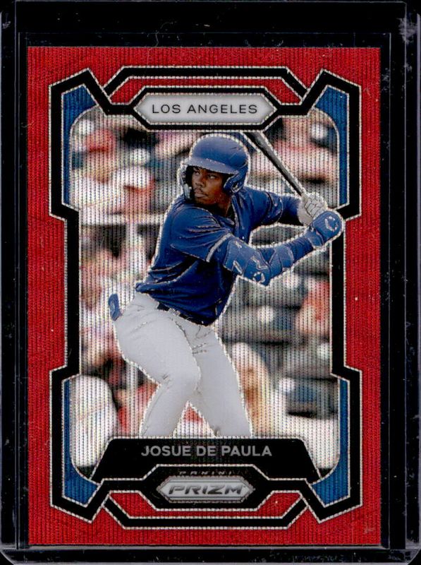 The Josue De Paula 2024 Prizm #173 Ruby Wave card is 1 of 38 Josue De Paula's card variations in the 2024 Prizm set being tracked by Sports Card Investor, including Base, Blue Ice, Green, Green Ice, and Pink Ice.