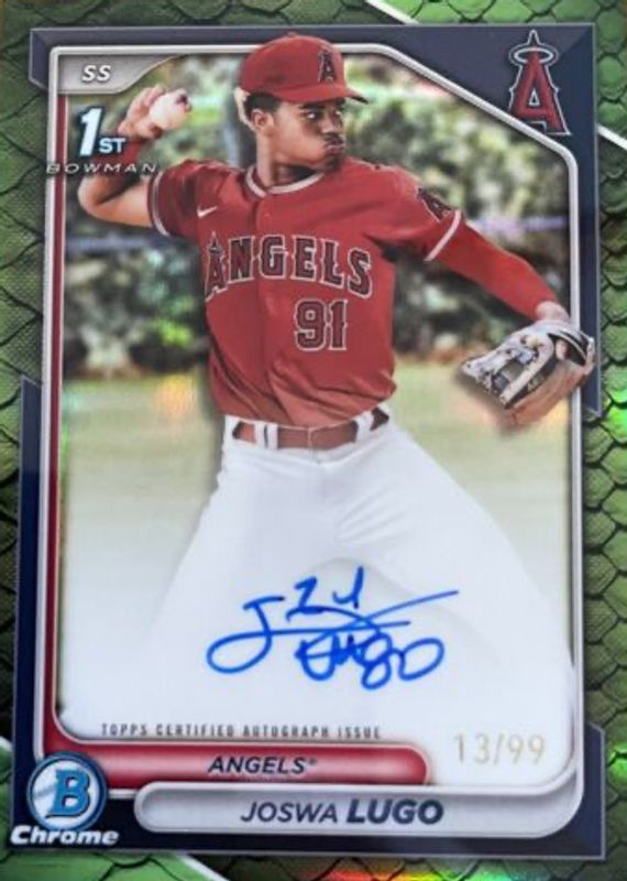 2024 Bowman Chrome 1st Joswa Lugo Green Reptilian Auto /99 Angels Top Prospect