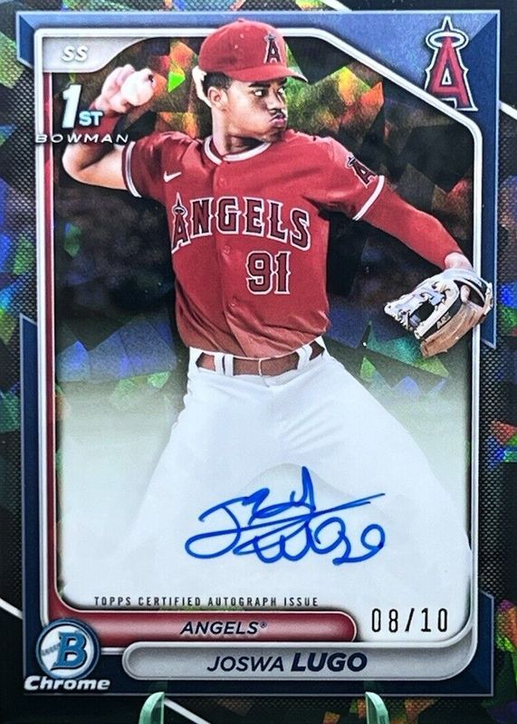 This card is 1 of 7 Joswa Lugo's card variations in the 2024 Bowman Chrome Sapphire Edition set being tracked by Sports Card Investor, including Prospect Auto /199 (1st), Prospect Auto - Green /99 (1st), Prospect Auto - Gold /50 (1st), Prospect Auto - Orange /25 (1st), and Prospect Auto - Red /5 (1st).