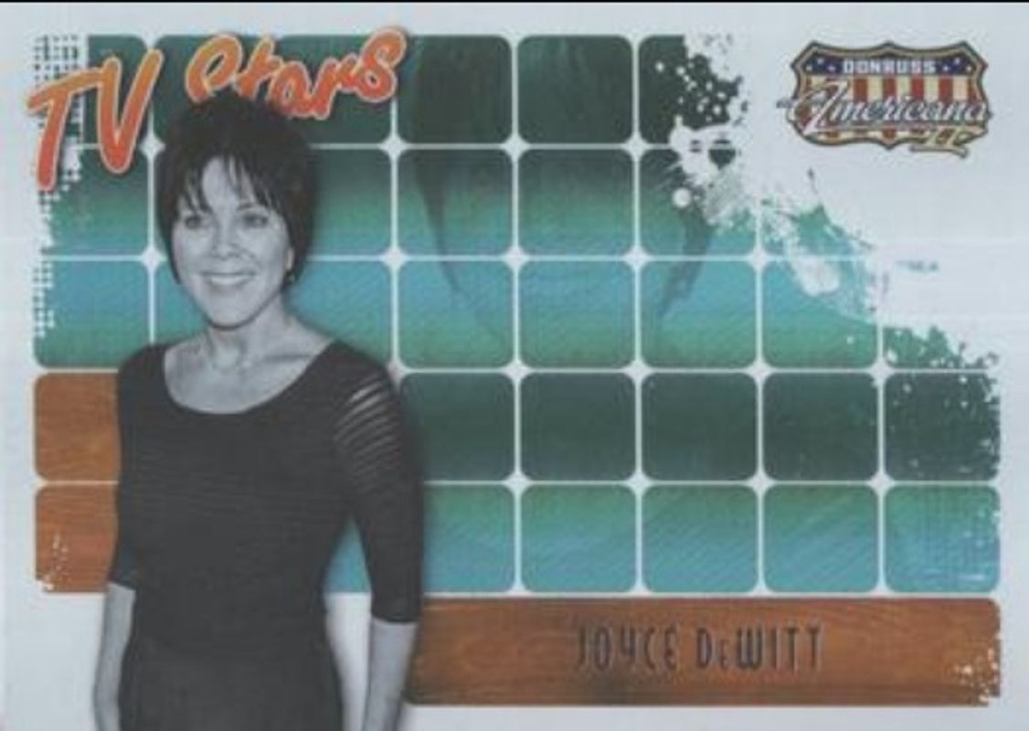 The Joyce DeWitt 2008 Donruss Americana II #TS-JD TV Stars /500 card is 1 of 12 Joyce DeWitt's card variations in the 2008 Donruss Americana II set being tracked by Sports Card Investor, including Base, Retail, Silver Proofs /25, Silver Proofs Retail /25, and Gold Proofs /10.