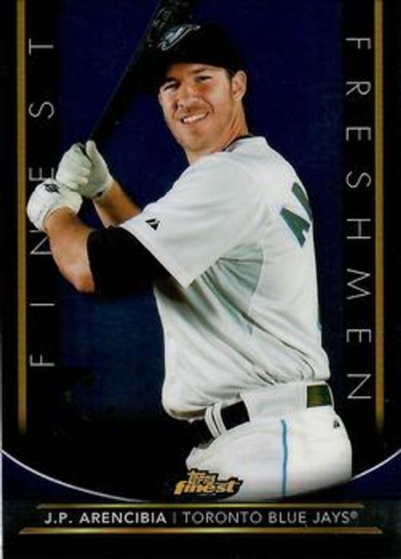 The JP Arencibia 2011 Topps Finest #FFR12 Freshmen card is 1 of 18 JP Arencibia's card variations in the 2011 Topps Finest set being tracked by Sports Card Investor, including Base, Refractor /549, X-Fractor /299, Green Refractor /199, and Orange Refractor /99.