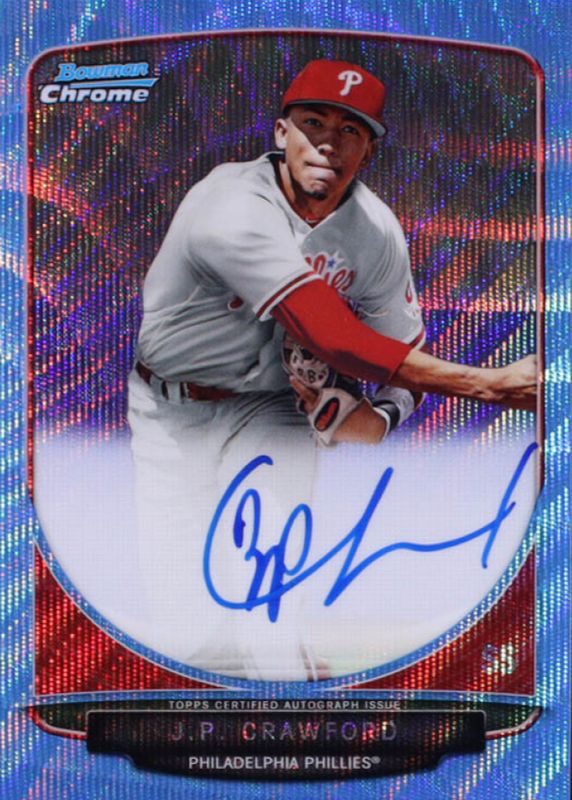 Recent Sales of JP Crawford 2013 Bowman Draft #BCA-JC Chrome DP Auto - Blue Wave Refractor /50 Raw