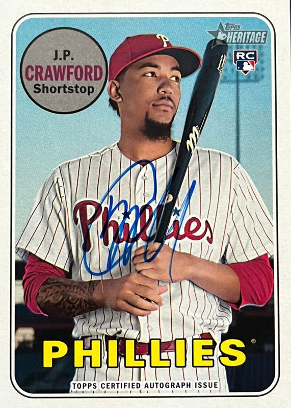 This card is 1 of 2 JP Crawford's card variations in the 2018 Topps Heritage High Number set being tracked by Sports Card Investor, including Real One Autographs - Red Ink /69.