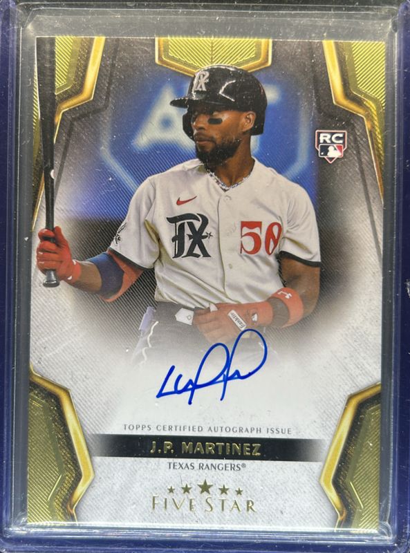 The JP Martinez 2024 Topps Five Star #FSA-JMA Base Rookie card is 1 of 8 JP Martinez's card variations in the 2024 Topps Five Star set being tracked by Sports Card Investor, including Aqua /75, Purple /50, Blue /25, Green /15, and Gold /10.