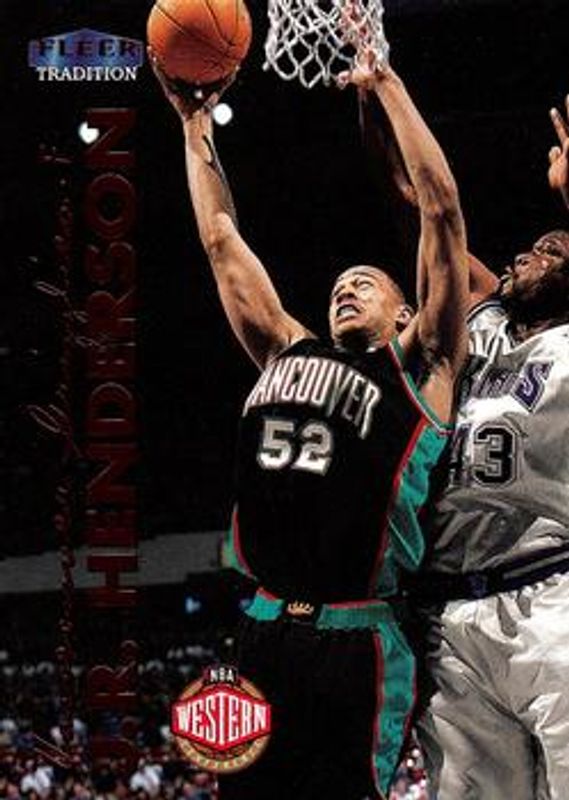 The JR Henderson 1999 Fleer Tradition #99 Base card is 1 of 3 JR Henderson's card variations in the 1999 Fleer Tradition set being tracked by Sports Card Investor, including Roundball Collection, and Supreme Court Collection /20.