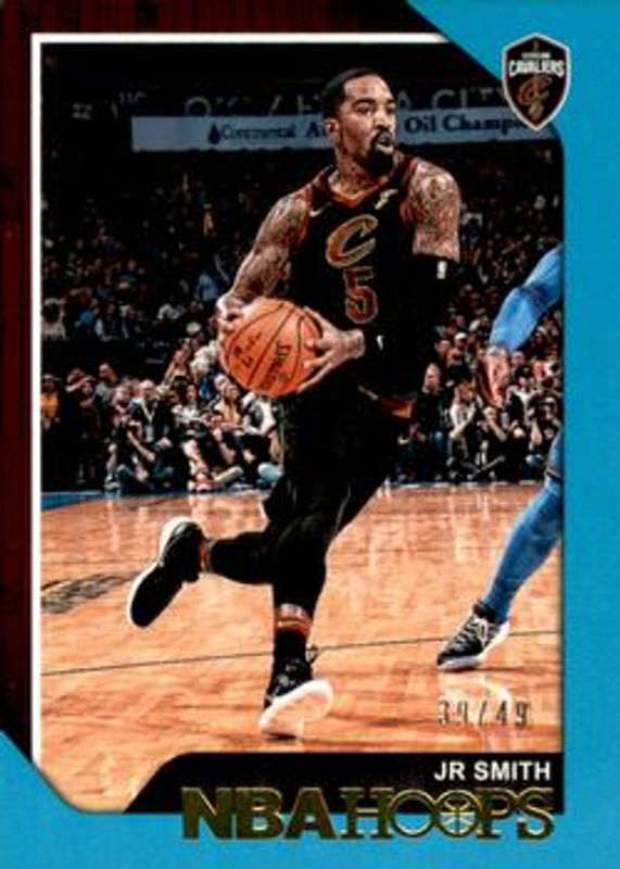 The JR Smith 2018 Hoops #92 Teal /49 card is 1 of 18 JR Smith's card variations in the 2018 Hoops set being tracked by Sports Card Investor, including Base, Red Backs, Premium Box Set /199, Blue, and Purple.
