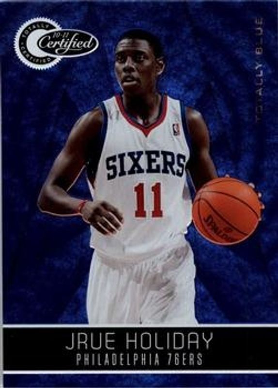 The Jrue Holiday 2010 Totally Certified #3 Totally Blue /299 card is 1 of 15 Jrue Holiday's card variations in the 2010 Totally Certified set being tracked by Sports Card Investor, including Base /1849, Totally Red /499, Totally Gold /25, Totally Green /5, and Totally Black /1.